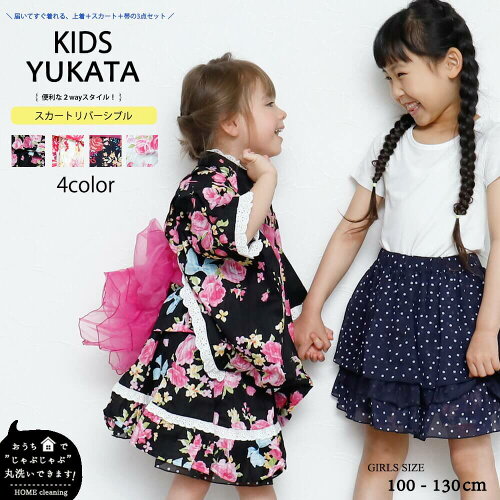 セパレート浴衣 簡単着付け スカートリバーシブル 女の子浴衣 子供浴衣 100 110 120 130 送料無料 おうちで浴衣