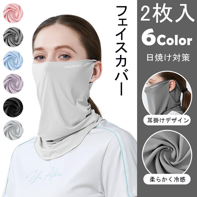 【2枚入り】息苦しくないフェイスカバー レディース 夏 スポーツマスク ランニングマスク 冷感 ネックガード UVカット 日焼け対策 紫外線対策グッズ 日よけマスク フェイスマスク スポーツマスク 洗える 顔や首の日焼け防止 レディース フェイスガード 耳かけタイプ
